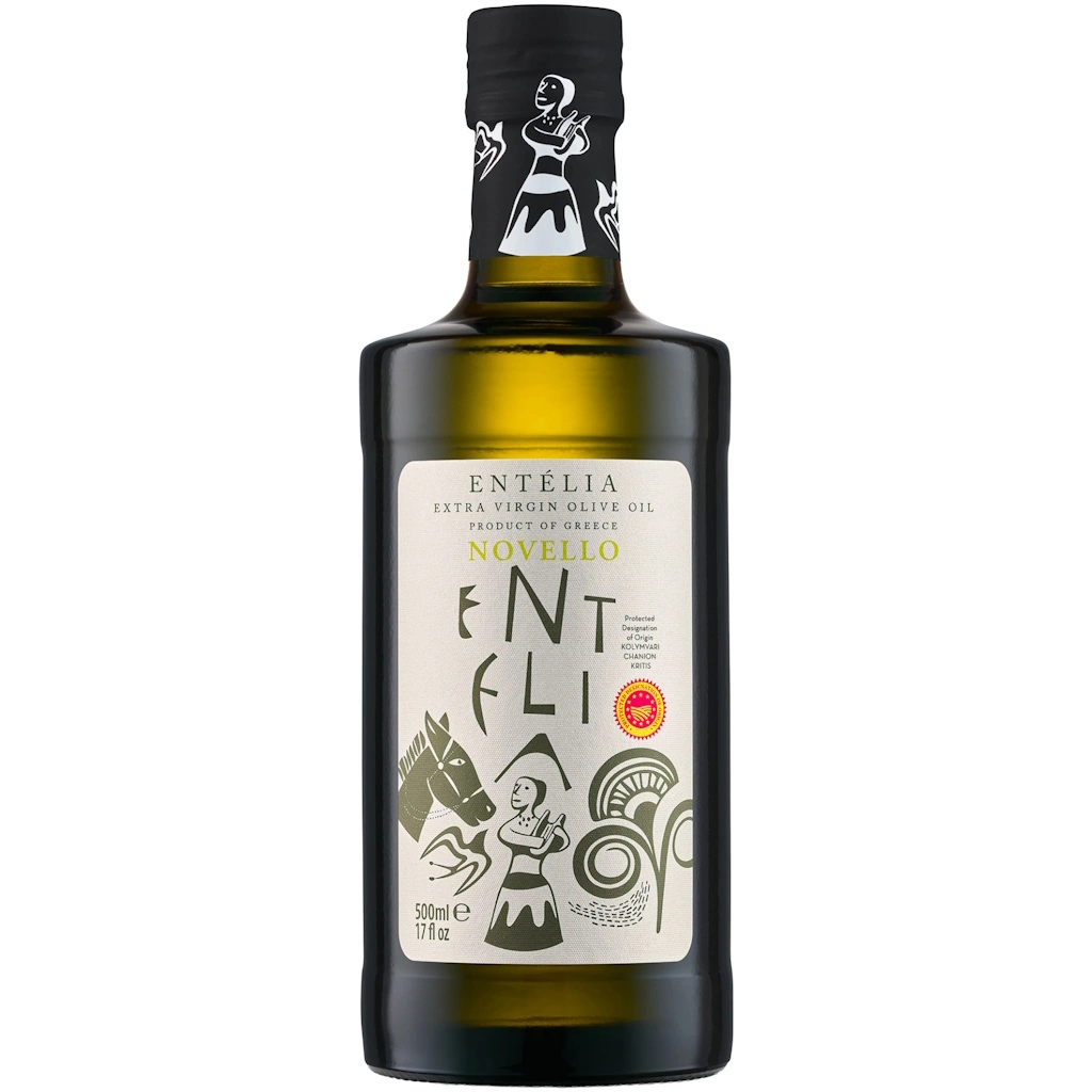 Produced by Kreta Food, Entelia Novello is an unfiltered, medium-robust extra virgin olive oil from PDO Kolymbari, Crete. Crafted from the season’s first hand-picked green Koroneiki olives, it is crushed within hours to capture supreme freshness.